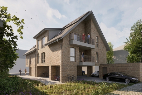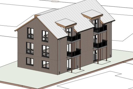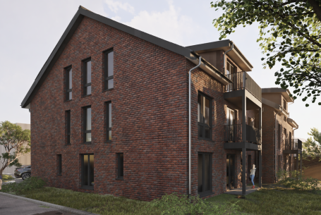 Mehrfamilienwohnhaus mit 8 Wohneinheiten & 8 KfZ-Einstellplätzen in CLT-Bauweise mit Klinker-Fassade