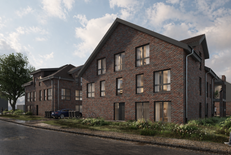 Mehrfamilienwohnhaus mit 10 Wohneinheiten & 5 KfZ-Einstellplätzen in CLT-Bauweise mit Klinker-Fassade