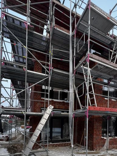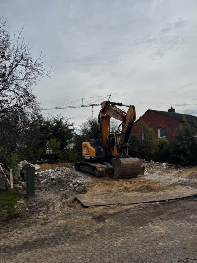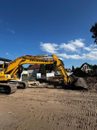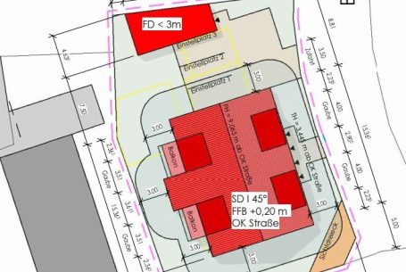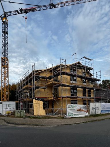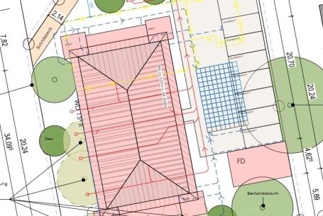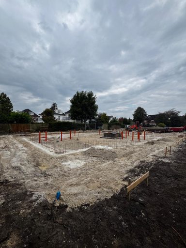 Herausforderung Hochspannungsleitung: Das Grundstück befindet sich im Einflussbereich von Hochspannungsleitungen der Amprion GmbH. Diese besondere Lage erforderte eine enge Abstimmung mit dem Netzbetreiber sowie eine sorgfältige Einhaltung aller relevanten Abstands- und Sicherheitsregelungen. Durch vorausschauende Planung konnte das Projekt trotz dieser technischen Herausforderung erfolgreich umgesetzt werden.