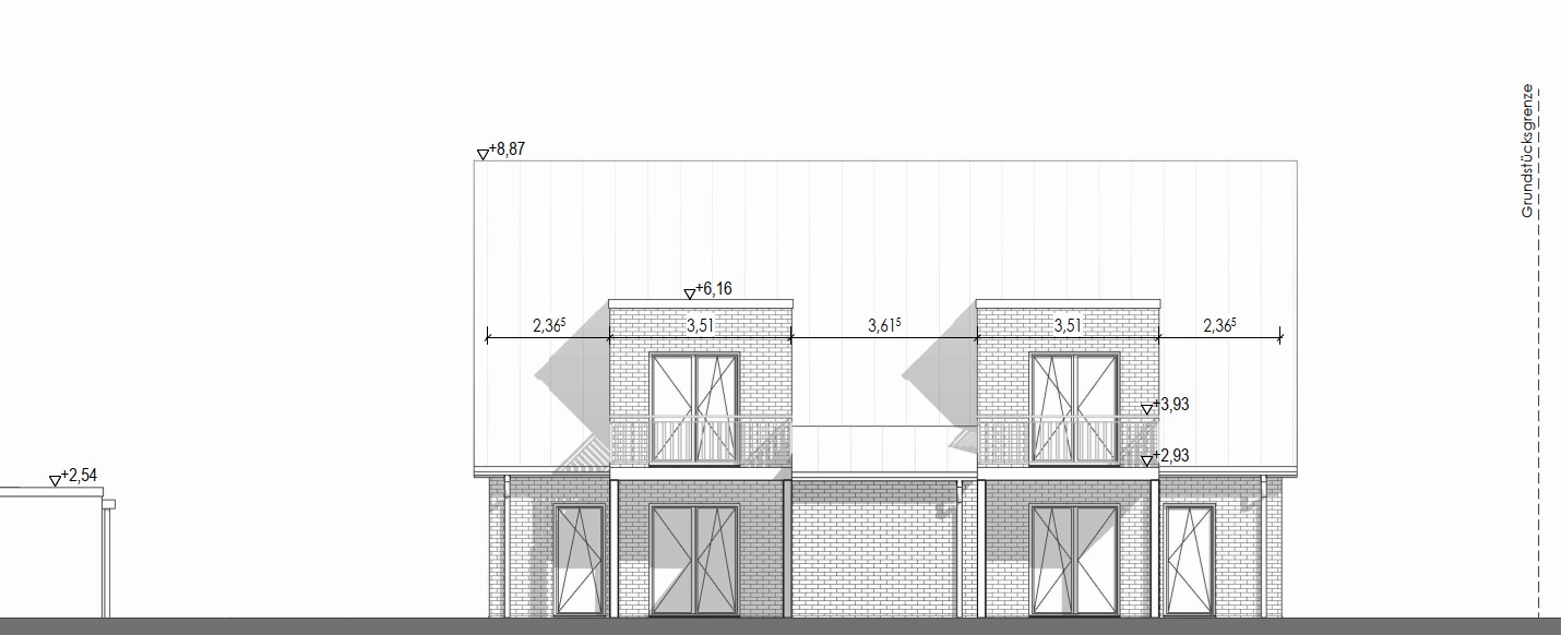 Zwei Mehrfamilienwohnhäuser mit je 7 Wohneinheiten & 14 KfZ-Einstellplätzen in CLT-Bauweise mit Klinker-Fassade