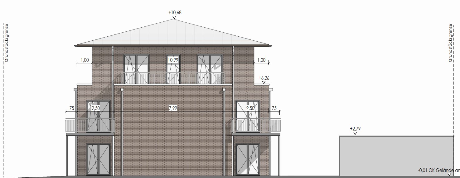 Mehrfamilienwohnhaus mit 6 Wohneinheiten & 6 KfZ-Einstellplätzen in Massiv-Bauweise mit Klinker-Fassade