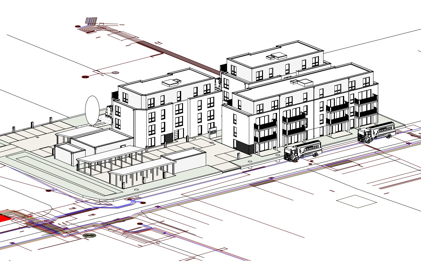 Erweiterung eines Mehrfamilienwohnhauses von 6 auf 8 Wohneinheiten & 6 KfZ-Einstellplätzen.