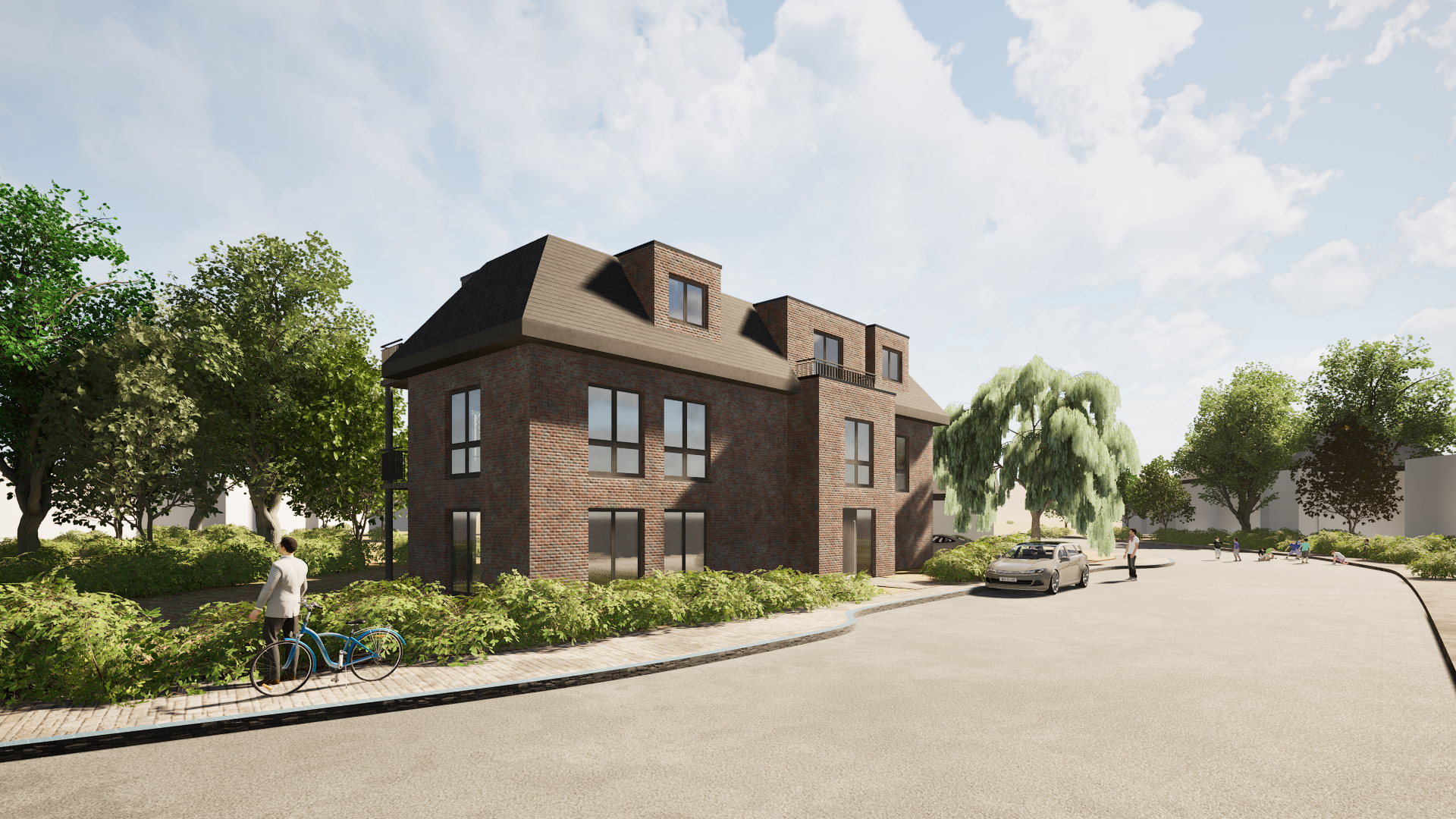 Mehrfamilienwohnhaus mit 10 Wohneinheiten & 5 KfZ-Einstellplätzen in CLT-Bauweise mit Klinker-Fassade